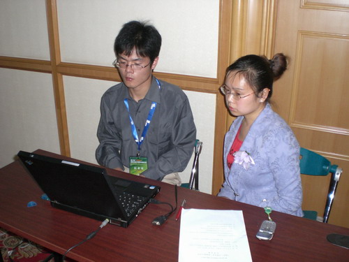 图为武汉亚伟速记中心的实习速录师陈剑和实习生刘娥在现场为院士的讲话提供了现场速记服务。